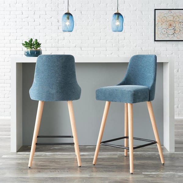 Stylewell Benfield Twilight Blue Upholstered Bar Stools With Back Set Of 2 Jones Hb Nc The Home Depot